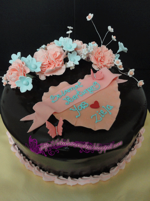 Tempahan dari Yas untuk hantaran pertunangannya. Terima kasih Yas, Russian Black and White untuk hantaran, bunga gumpaste carnation tu bunga gumpaste pertama yang saya buat selepas menghadiri kelas "Fondant Stacked Cake". Semasa kelas belajar buat bunga rose tetapi saya saja nak cuba buat bunga carnation. Ok ke? Okla kan untuk beginner macam saya ni :)